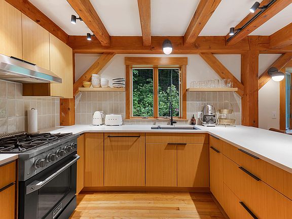 From the open concept living room, sliding glass doors open to a 740 sq. ft. deck overlooking trees, gardens, and open lawn—perfect for gatherings or quiet mornings. Since 2021, the home has seen significant improvements including a brand new kitchen, en-suite main bathroom, walk-in closet, outdoor stone patio, as well as all new heating systems: efficient heat pumps that provide both heating and summer cooling, a high-efficiency wood stove, and a brand new propane system installed Aug '25 with a 15-year limited lifetime warranty. The in-law unit has been reimagined as a self-contained living space with its own entry and kitchenette—ideal for guests, extended family, or rental income.