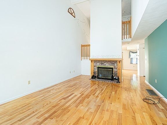 Thought you couldn't afford Harrington Farms? This lovingly kept 2BR 1.5 bath unit is light and bright with great privacy. Birch hardwood floors and a beautiful brick fireplace greet you as you enter plus an open staircase to the 2nd floor makes this unit feel much larger and shows off the open floor plan. A spacious open kitchen and huge dining area could double as a family room or office. This south facing skylit unit is sunny all day. The white cabinet packed kitchen with granite counter tops also has recent stainless steel appliances and a slider to the private deck. The main floor powder room w/ cherry cabinetry also features convenient laundry access. Washer & dryer are included. Upstairs are two spacious bedrooms w/ a Hollywood bath. Main BR has a handy closet system. Recent cherry cabinetry w/ Corian top plus a huge linen closet for your convenience are included. Baths have tiled floors. Proven complex with good reserves in a fantastic location for commuting and shopping.