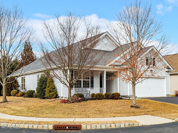 Come and explore this beautiful home situated on a premium wooded corner lot across from a lake in this active adult community. As you enter this Bonaire Royale with a sunroom, one of the most sought-after models, you'll notice the gorgeous hardwood flooring that gleams throughout the main living areas. The gourmet kitchen boasts white cabinetry, marble tile, granite countertops, stainless steel appliances, and a countertop island. The family room features an electric fireplace and seamlessly flows into the sunroom, which has a door leading to the private backyard that showcases a stunning paver patio. The expanded master bedroom includes a spacious walk-in closet and an ensuite master bath featuring a large stall shower and double sinks. The guest bedroom and bath are located in a separate area of the home for added privacy. Above the garage, you'll find a 20x10 bonus room. This is a gated community with a wealth of amenities, including a spectacular clubhouse that offers indoor and outdoor pools, saunas, billiard rooms, card rooms, a fitness center, a library, tennis courts, pickleball courts, bocce courts, shuffleboard, putting greens, and much more! Schedule an appointment today; this is a must-see home!