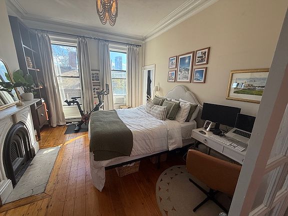 Prime Town Hill Location. Brownstone, Large One Bedroom on the second floor offering amazing views of the Zakim Bridge and the Boston Skyline. Open Livingroom & Diningroom with 12 ft ceilings and two original marble fireplaces. Custom built Maple Kitchen with Granite Counters & Miele Cooktop, dishwasher and disposal. Oversized Bedroom with Marble Mantel and great closet space. Custom built-ins in every room, great storage. Beautiful Cornice Moldings. Heat & Hot Water included. A new shared washer & dryer. Entertain friends for a drink and then onto Prima (just around the corner). Ten minutes from the North End, MGH and Cambridge. Pet friendly and ready for a mid-November move-in. 12 Month's rent. Move-in date 11/15/2025.