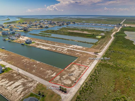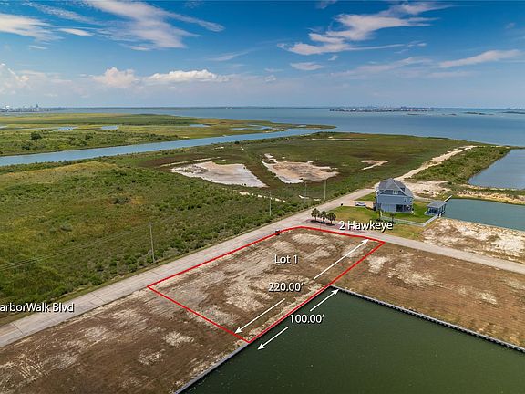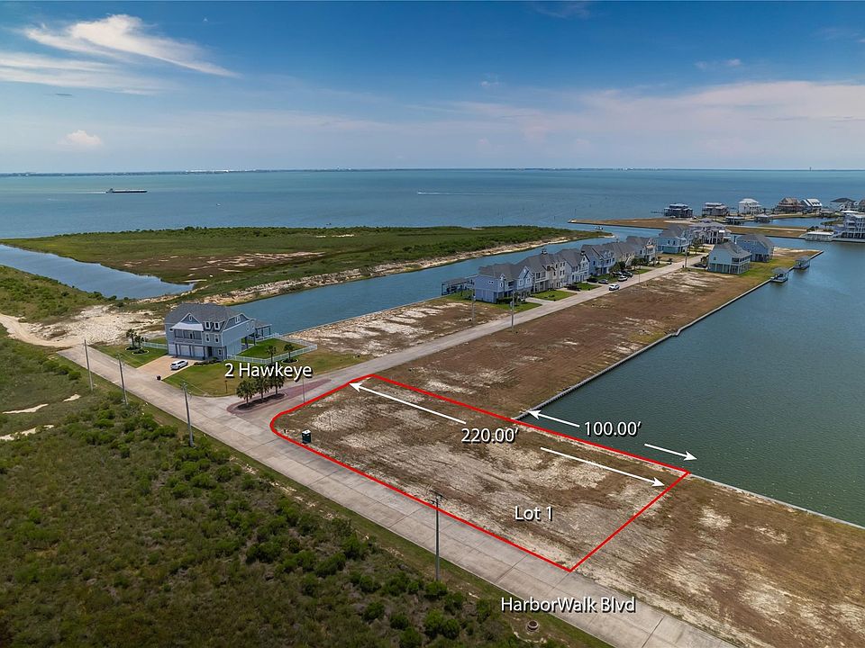 Large 22,767 sq ft waterfront corner homesite with room to build a 40' X 15' boathouse! 1800 minimum sq ft to build , no building time-frame and choose your own builder. Excellent location overlooking a 200' wide canal & plenty of room for a pool and other outdoor activities. Great fishing & bird watching opportunities year round. This is one of the largest homesites listed on West Galveston Bay. Harborwalk is centrally located on the mainland & is a premier gated waterfront community on West Galveston Bay. Direct access to the Intracoastal Waterway, full service marina, ship's store with deli, boutique, fuel, tackle, fresh bait, swim center with Flamingo Bar, hike & bike trails & a seven bedroom lodge. Please see attachments or call for community details.