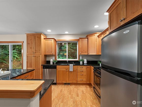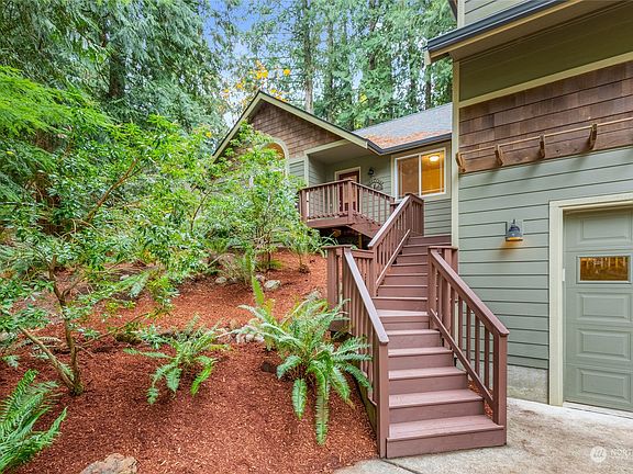 This 4BD, 2.5BA property is your cozy PNW dream come true! In the spacious living room, you’ll find vaulted ceilings, fireplace, and a charming crescent window for tons of natural light. Perfect for entertaining, you’ll love the finished lower level & the open concept kitchen with wood floors and plenty of cabinet storage. Your large primary suite is the star of the show with attached bath ft. a separate shower & huge tub. Step out onto the back deck to enjoy the peaceful, private feel of this property— perfect for morning coffee or evening gatherings. With a brand-new roof and hot water heater, + access to all Sudden Valley amenities, this home is turn-key and ready to become your haven in the woods.