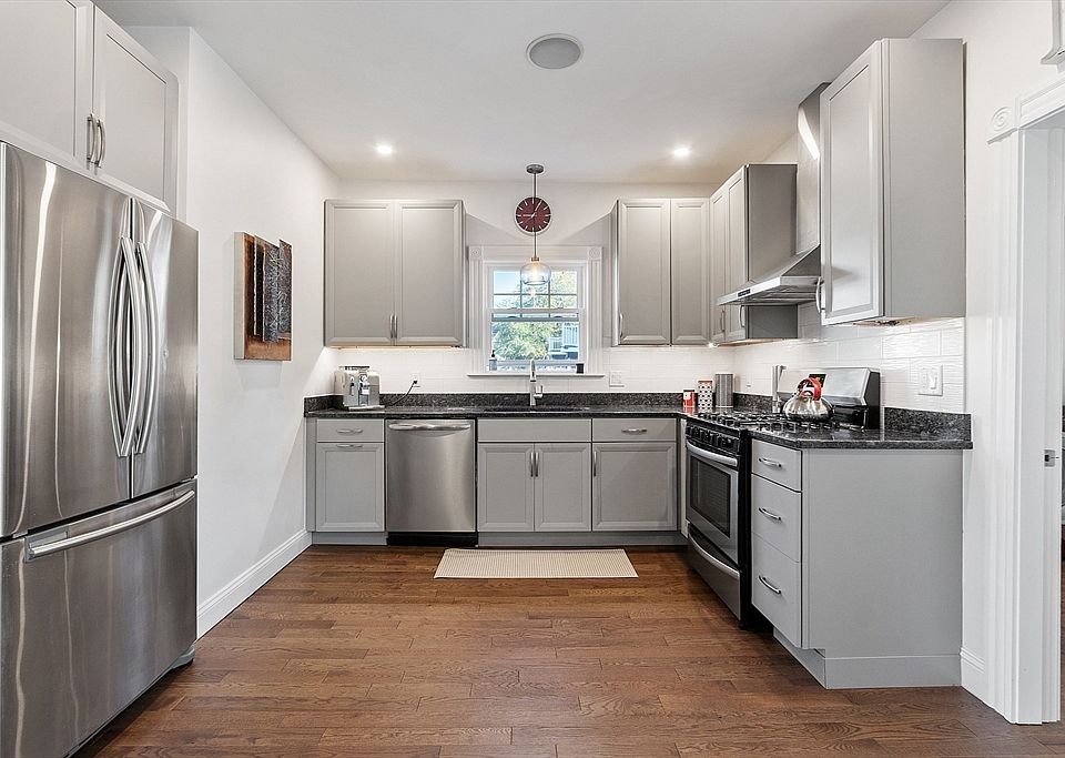 - Features: Dining Area, Countertops - Stone/Granite/Solid, Cabinets - Upgraded, Deck - Exterior, Open Floorplan, Recessed Lighting, Remodeled, Stainless Steel Appliances, Flooring - Engineered Hardwood