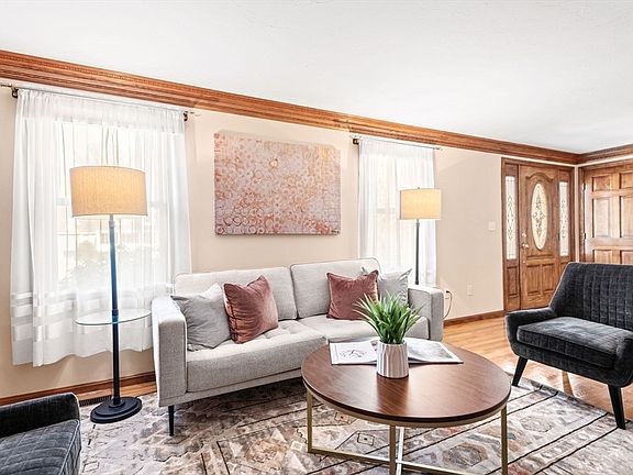 BELLINGHAM - Nestled on a lovely side street with a neighborhood feel, this flowering, double-depth lot is close to schools, shopping, + more. The 2-3 bed, 2 bath custom ranch w/mahogany deck + Sunsetter awning features an airy, open floor plan & updates galore. Beautiful hardwood floors shine in sunny living room w/propane fireplace + crown molding. Continue into the large kitchen/dining room feat. Corian countertops, custom cabinets, breakfast bar, + recessed lighting. Family room w/plush carpeting, French doors and backyard views could be the perfect 3rd bed, playroom, office - whatever you need. Oversized main floor master w/brand-new carpeting, walk-in closet, + full bath. Front hall leads to 2nd bedroom & updated full bath w/barn door + laundry! Full unfinished basement has high ceilings + tons of potential. Bonuses here include central air; town water/sewer; irrigation; gutter guards; option to upgrade to gas cooking; underground electrical; roof is under 10 yrs old.
