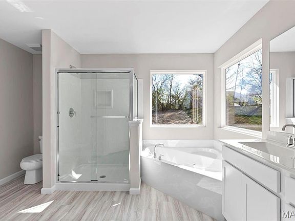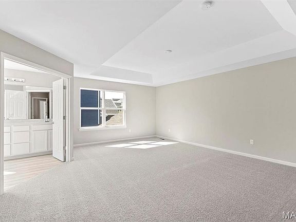 Pre-Construction. To Be Built Home ready to personalize into your dream home! BASE PRICE and PHOTOS are for 4BR, 2.5BA Hermitage II Two Story. Pricing will vary depending on various interior/exterior selections. This beautiful home opens to a formal dining room and living room/office space. Large spacious family room with options for window wall, gas fireplace and bay windows. Kitchen with eat-in breakfast area, available center island or gourmet kitchen layout! Master suite features large walk-in closet and gorgeous private bath with tub and walk in shower. The Hermitage II includes 2 car garage, main floor laundry, and more! Additional selections include master bedroom coffered ceiling, 2nd floor laundry, and luxury master bath. Enjoy incredible customer service and McBride Homes' 10 year builders warranty! Located off Rule Avenue in Maryland Heights, MO, Louiselle Park will feature 39 homesites in a great location, just minutes from Creve Coeur Lake.Display photos shown.