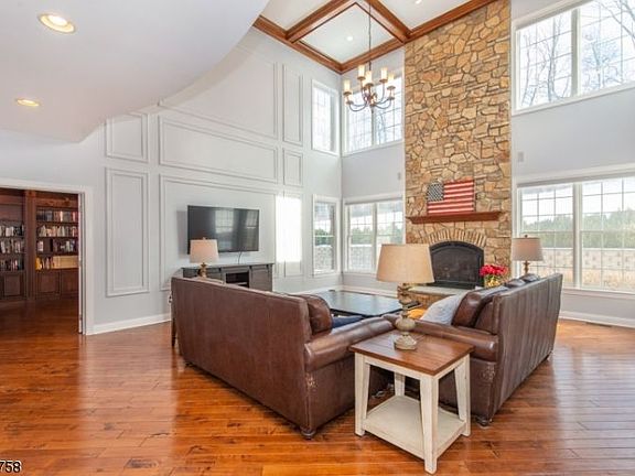Elegantly appointed Toll Brothers Country Estate-like Colonial Home in the desirable High Ridge Estates!Situated on 2.53 acres of professionally landscaped property that will impress you the moment you pull into the driveway. Savor a heavy sense of tranquility and upgraded elegance paired with privacy and an upscale lifestyle. This unique home is equipped with the finest upgrades! Front entry boasts a grand two-story foyer with sweeping staircase with wrought iron spindles and views into the formal living and dining rooms. The two-story stone gas fireplace is the centerpiece of the soaring family room filled with an abundance of natural light from the walls of windows. The open flow leads to the breakfast room with sliders to the patio. Stainless steel appliances, granite counters, tile backsplash, island prep sink, walk-in pantry and hardwood flooring round out the nicely designed layout in the kitchen. First floor office boasts built-ins and can offer privacy for a remote work environment. Walk into a fabulous conservatory with vaulted ceiling and custom built-in bar. You and your guests will find yourself gravitating to relax in this space as it offers wonderful views of the manicured grounds. The primary bedroom puts the perspective in the word "suite . Massive bedroom with sitting room with built-ins, walk-in closets and gorgeous luxury tiled bath. Picture perfect setting with over 4700 sq ft of living space offers the perfect setting for all your entertaining needs