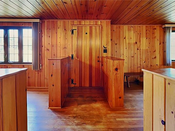 Such a wonderful opportunity! Fabulous location with convenient access to I-279 at Camp Horne! Corner home site in Shannopin Highlands with wide driveway. Rustic feel with wood paneling and hardwood flooring. Large living room with log burning fireplace and built-in bookshelves. Dining room offers two glass-front china cabinets. Dutch door from dining room to kitchen. Eat-in kitchen with updated gas range. Large bedroom with three closets. Hall bath. Lower level den (partially finished), laundry, storage space, and oversize garage. Rear patio and spacious rear and side yards. Storage shed. Updated roof.