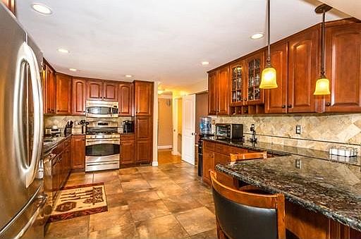 Pristine Center Entrance Colonial in a cul-de-sac neighborhood and walking distance to JFK school. Better than new, this home was fully remodeled from top to bottom by owners who intended on staying so everything is updated & top of the line including a skylit cherry & granite kitchen w/ peninsula, radiant heat & gas fireplace, 3.5 new baths, hardwood floors throughout, front to back living room w/ custom built mantel & wood stove, lower level family room / 4th bedroom w/ wet bar & full bath, gorgeous master suite featuring a walk in closet w/ custom built in's & full marble bath w/ double vanity, steam shower & heated floor, new in ground heated salt water gunite pool w/ built in lighting, custom pebble apron & child safety fence, oversized mahogany deck w/ built in lighting, PVC rails & gas line for grill, stone patio, 2 car attached garage, fully fenced yard, new roof, windows, cedar impression siding, heat, c/a, electric, driveway, landscaping, storage shed, stone walls & more!