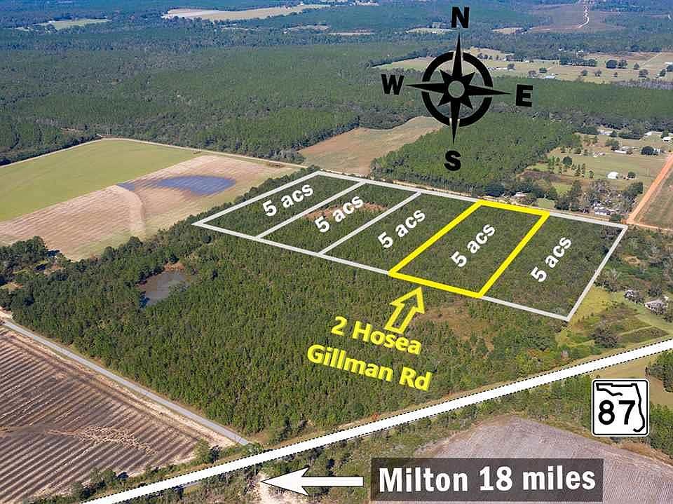 Milton, Florida- Whitfield Community is a place of peace and seclusion. Mobile Homes are allowed..Beautifully wooded and cleared 5 acres lot presents the perfect location to build your custom home or mobile home. You can purchase 5 or 10 acres...Paved Hosea Gillman Rd provides easy access and the opportunity for that scenic drive-way. Address is Milton, but this is part of the Whitfield community. Water is available, need to pay for hookup. Just minutes to Berrydale. Call now to take a look at your new home-site-to-be! Use GPS ADDRESS 6462 Hosea Gillman Rd, Milton, FL. Property is just before this address across the street.