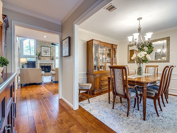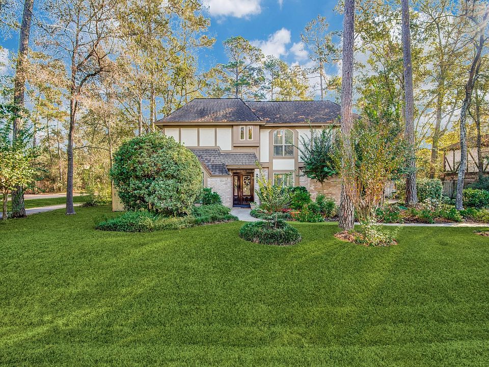 Do not miss this fully updated 2 story Grogan's mill home in Tournament Golf Course neighborhood! Conveniently located just minutes away from Market St, Mall, Waterway, golfclub, walking trails, parks, Medical Center & I45. Cathedral ceiling in the 2 story family rm w/a centered floor to ceiling f/p. Family rm w/large windows, wood floor, built-in wine bar w/cooler&rack. Kitchen w/large center island w/microwave, plenty of granite counter space & cabinets, under cabinet lighting, backsplash, 2 basin farmhouse sink, SS appliances, double oven, wine cooler, pantry w/spice rack, adjacent breakfast area, butlers' pantry &easy access to formal dining rm. Primary w/his&her walk in closets w/automatic sensor lights, double sinks, sitting vanity&oversized shower.Incredibly large bdrms w/carpet,ceiling fans,shelved closets,shared bthrm w/double sinks,tub/shower combo&granite counters. Utility Rm w/plenty of cabinets, folding/ironing shelf,built-in MUD. Spacious Green backyard & covered patio.