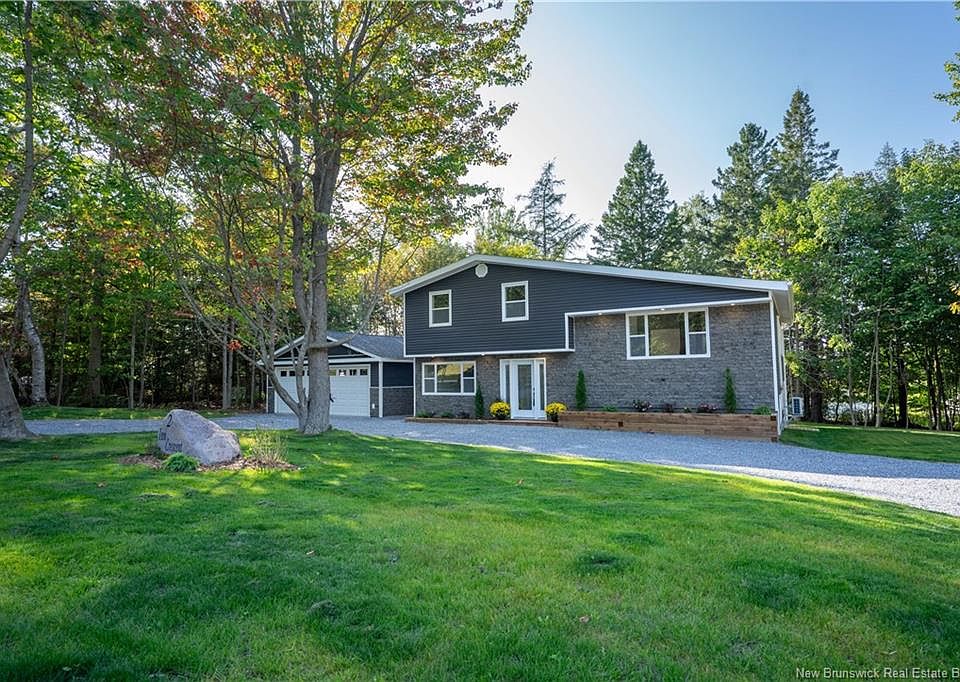 Welcome to 2 Ian Crescent – a stunning 4-bed, 2-bath home in beautiful Rothesay. Completely rebuilt from the core, this home offers the comfort and peace of mind of a brand-new property. The main level makes a bold first impression with heated white-tile floors in the entry, a spacious office (or spare bedroom), a 3-piece bath, large laundry, and a bright mudroom with secondary entry – perfect for messy days. The second level is the heart of the home, with soaring ceilings and an open-concept living, kitchen, and dining area. A coffee bar adds convenience, while patio doors lead to the large back deck for effortless access from the kitchen to the barbecue. Upstairs features a large primary bedroom, two additional bedrooms, and a spacious 3-piece bath. The fully finished basement adds versatility with a fourth bedroom, storage, and a large living room with an electrical fireplace. Perfect for those cozy movie nights. Outdoors, enjoy .79 acres and a landscaped yard, and an attached storage shed ideal for gear, tools, kayaks, etc. The newly constructed detached double garage offers plenty of space for your vehicles, storage, or even a workshop, or all three. Extensive upgrades include new roof, windows, doors, insulation (R24 walls/R50 attic), electrical, sewer line, plumbing, flooring, driveway, landscaping, garage, and a complete interior renovation – effectively a brand-new home ready for its next chapter.