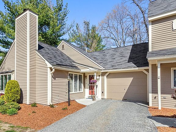 All the great amenities of condo living offered at Brickett Hill plus one-level living! This meticulously maintained end-unit "Whittier" Ranch has 6 spacious rooms and an attached garage and offers complete privacy with unique floor plan. Large Cathedral ceiling opens the Living Room/Dining Room space accented with a wood burning fireplace and two large picture windows. Large Kitchen, with enough space for everyday dining. Down the hall is the full bathroom, with Jacuzzi tub and Linen closet. There is a large and bright Master Bedroom which has its own private 3/4 bathroom. The second bedroom is opposite and there is a slider with access to the private outdoor patio. Stackable laundry unit is at the end of the hall. There is a large finished "Loft" style area on the 2nd level with skylights and a 1/2 bathroom, great for a 3rd bedroom or office or additional storage use. Showings start immediately, so hurry you don't want to miss this one!