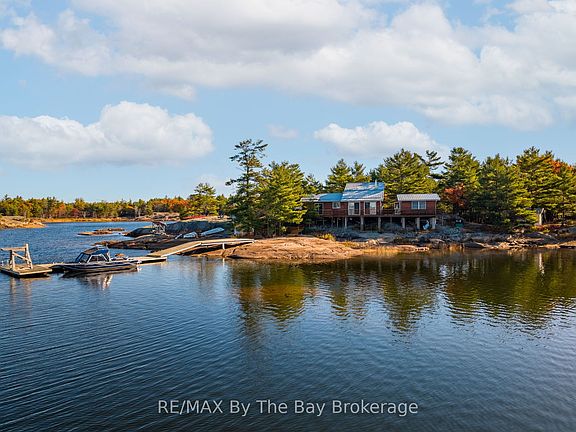 Nestled in the heart of Cognashene, lies a stunning 2-acre island in a private bay with only 3 other cottages separated by crown land. Enjoy the tranquility and stellar sunsets from an extremely well appointed 2-bedroom cottage with large loft and open concept living / kitchen. Only a few steps across the sun deck, there's a private guest cabin so family and company will have their own space. A short walk down a rocky path gets you to yet another small Bunkie for additional sleeping. A deep water dock provides sheltered mooring for a large boat and offers great swimming and fishing. This pristine and unique Island getaway has been a well loved home away from home for a wonderful local family for more than two generations, and they are leaving the place in perfect condition for a new family like yours. Access is available by boat, airboat and snowmobile from Honey Harbour.