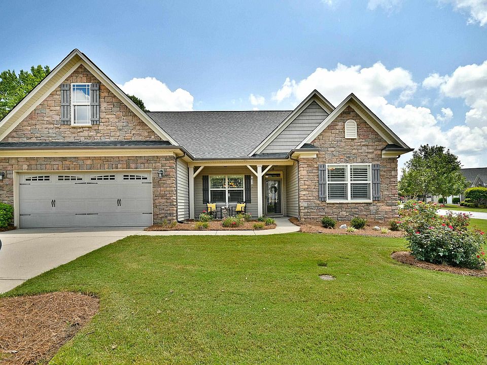 FABULOUS 3- or 4-BEDROOM OR FLEX ROOM | 3 FULL BATHS | LAWN MAINTENCE| GRESHAM PARK SUBDIVISION Welcome to this stunning home on a corner lot located in the sought-after Gresham Park community. Lawn maintenance included for easy living! This home includes 3 spacious bedrooms a huge bonus room with a full bath as well as a large closet and walk in attic storge. This area is perfect as a 4th bedroom, Man Cave, or Hobby Room. This home offers flexible living at its finest. The kitchen is a chef’s dream with 42” cabinets, granite countertops, custom tile backsplash, and stainless-steel appliances. The primary suite is a true retreat, featuring a large garden tub, separate glass shower, dual vanities and ceramic tile floors. This home is loaded with upgrades that include dramatic square columns, tray and vaulted ceilings, gorgeous wood floors, gas fireplace, and 4” white plantation shutters on every window. Enjoy year-round living in the sunroom leading to a private screened porch with a fireplace mantle ready for you to install a television for outdoor entertaining. The fenced backyard offers extra privacy. This home has it all, space, style, storage, and standout features in every room. Schedule your private showing today.