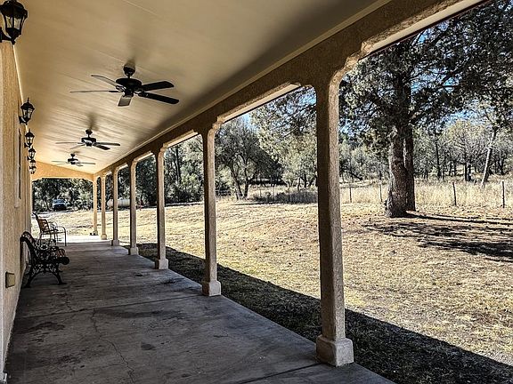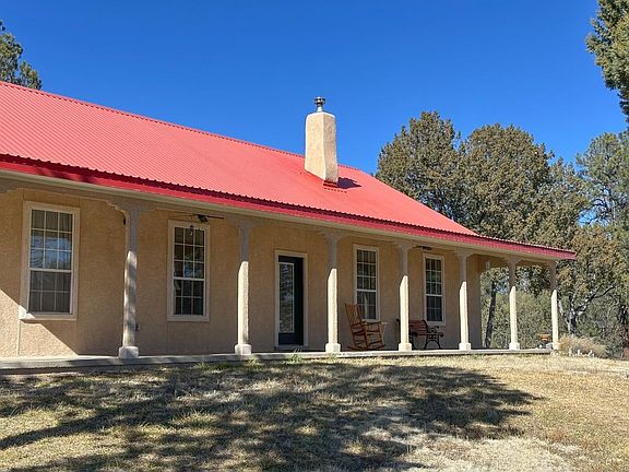 Custom-built home bordering public land, with exceptional privacy & forested trails just beyond the back door. Full-length covered porches seamlessly connect indoor living with the surrounding natural setting. Spacious eat-in kitchen features granite countertops, custom cabinetry, & newer appliances. The living room offers vaulted ceilings, built-in bookshelves, a wood stove, & east-facing windows with peaceful forest views. A split floor plan provides privacy, with a generously sized primary suite. The en-suite bath includes dual vanities, a tiled shower, soaking tub, linen storage, & walk-in closet. Additional bedrooms, one with French doors to the porch, share a well-appointed bath. A 27’ x 36’ insulated metal shop w/ concrete floors, skylights, wood stove, 220V power, and roll-up door doubles as a garage. Set on flat, usable 2.6 acres with circular drive, full fencing, portable corral, & five frost-free hydrants. Unrestricted, near Lake Roberts, the Gila National Forest, & town.