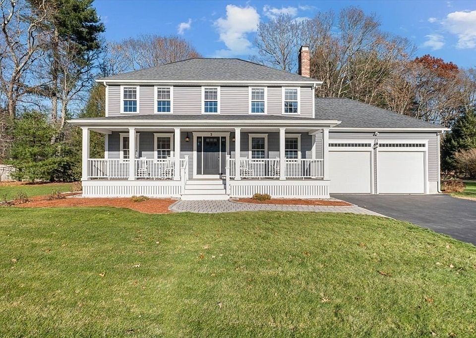 Welcome to 2 Kayla Drive! This beautifully maintained 4-bedroom, 2.5-bath Colonial is perfectly situated in a highly sought-after neighborhood. Offering the ideal blend of style, comfort, and peace of mind, this home features numerous recent upgrades, including new siding, windows, roof, and central air conditioning—providing long-term durability and energy efficiency.The inviting oversized farmer’s porch sets the tone for this warm and welcoming home. Step inside to find a spacious family room with a cozy fireplace, perfect for relaxing or entertaining. The large eat-in kitchen includes ample cabinet space and a slider leading to a brand-new deck & patio that overlooks a private, level backyard—ideal for gatherings, gardening, or outdoor play.Upstairs, the primary suite boasts a private full bath and a large walk-in closet. Three additional bedrooms all offer great natural light and generous closet space. Additional features include a full basement/workshop with expansion potential.