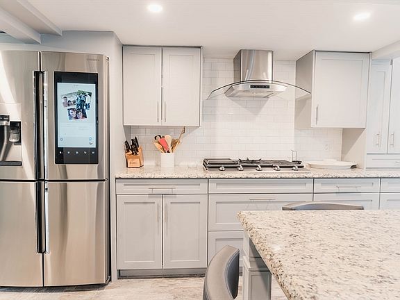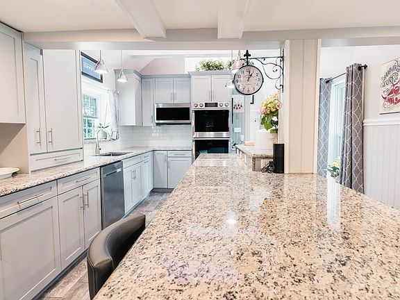 - Features: Cathedral Ceiling(s), Beamed Ceilings, Flooring - Stone/Ceramic Tile, Countertops - Stone/Granite/Solid, Kitchen Island, Cabinets - Upgraded, Recessed Lighting, Remodeled, Stainless Steel Appliances
