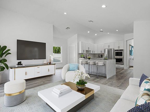 Do you love cooking and entertaining? This home has the PERFECT kitchen setup for both! Brand new white-wood shaker soft-close cabinetry, premium European handles and Calacatta polished & waterfall edge quartz countertops. The oversize cook's island offers ample space for meal preparation and doubles as a gathering spot for friends and family. In addition, a built in drawer microwave, induction cooktop with pop-up ventilation enhances the modern vibe and clean edges to this tropical gem.