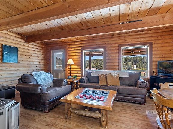 Completely furnished (includes all furniture, appliances & lawn equipment), this log mountain cabin is the quintessential retreat you've been searching for! Conveniently located near town yet secluded enough to escape the urban hustle. Enjoy awe-inspiring views of the Payette River w/ private association access to a serene common area along its banks. Inside, discover a delightful split-loft featuring Queen beds in each section (which can easily be converted into bedrooms w/ the addition of a door), all nestled on a generously sized double lot—a thriving VRBO/AirBnB hotspot. Step out onto the spacious deck overlooking the river, or entertain in the ample yard. A detached, roomy 2-car garage, supplemented by 2 additional storage spaces, offers plenty of room for your vehicles and gear. The upgraded bathroom and newer stacked washer/dryer add modern convenience. With winter & summer access, plus a plethora of outdoor activities like fishing, hunting, rafting, kayaking, & snowmobiling just minutes away. BTVAI