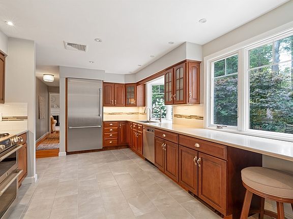 Location, location, location! Wonderful 4BR 2.5BA Colonial privately set in a popular Dover neighborhood w/sidewalk access to Dover’s town center, new Caryl Community Center, library, Caryl Park, Noanet Woodlands & Chickering School. The seamless floorplan offers the perfect flow for entertaining both inside & out. Kitchen w/stainless appliances, quartz countertops & views of the gorgeous backyard; cozy fireplaced family room, home office, formal dining room, fireplaced living room & amazing 4 season sun room. Four bedrooms on the 2nd level which includes the beautiful primary w/cathedral ceiling, walk in closet & bath; 3 generous bedrooms & family bath. Finished lower level has flexible space for playroom & hobbies. The private backyard oasis boasts 3 inviting patios, deck & water feature w/stunning landscaping throughout the property. Attached 2 car garage, storage shed. Needham commuter train 3 mi, Wellesley 5 mi. 2018 roof. Dover-Sherborn High School was just voted #1 in MA again!