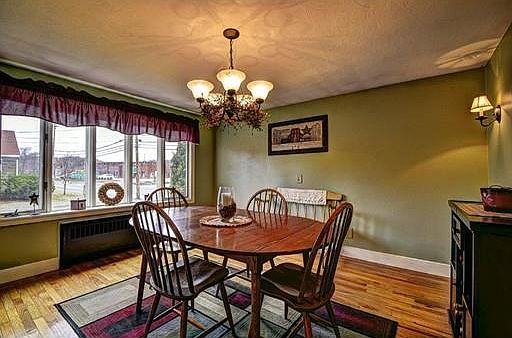 Showings start at OH, Sat & Sun, 12-1:30. Corner lot, quaint neighborhood & nice curb appeal! Its either ceramic tile flooring or hardwood flooring in this well loved 6 room Cape featuring an updated kitchen with ceramic tile flooring, gas cooking, built in microwave, recessed lighting, and good cabinet/counter space. Front room dining room features an awesome, oversized bow window. Roomy living room has cathedral, rich looking knotty pine ceiling with ceiling fan & closet. First floor, cozy bedroom has French doors to deck, ceiling fan & crown moldings. 2 Front to back upstairs bedrooms; one with a cedar closet! 12x12 Composite deck overlooks level, fenced in yard boarded by landscaping as well as a open patio and garden shed. Walk out basement has potential for additional finished space. Windows 2013, heat & oil tank 2010, electric 2011, propane tanks 2017. Close to park, school, shopping & highway.