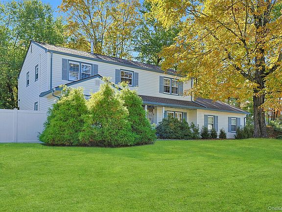 SUFFERN, NY: Step through the doors of this timeless Colonial and feel immediately at home. The dramatic entryway with a Grand Staircase sets the tone for a residence that’s both elegant and inviting! Rich wood floors throughout this home on both levels, leading you from the grand-sized living room, perfect for cozy movie nights, to the formal dining room, ready for holiday celebrations and Sunday dinners. The kitchen is the heart of the home, with cherry wood cabinetry, granite countertops, SS appliances, recessed lighting and space for gathering and cooking side by side. Large den with recessed lighting, tray ceiling and sliders which opens to a stone paver patio. Fully fenced in yard with white, vinyl, maintenance free fencing for optimal privacy.