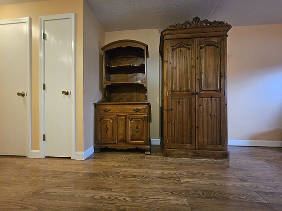 Wall ac unitFrench armoireLarge closetSecretary deskBaseboard heatCherry mahogany kitchen cabinetsFull size tub