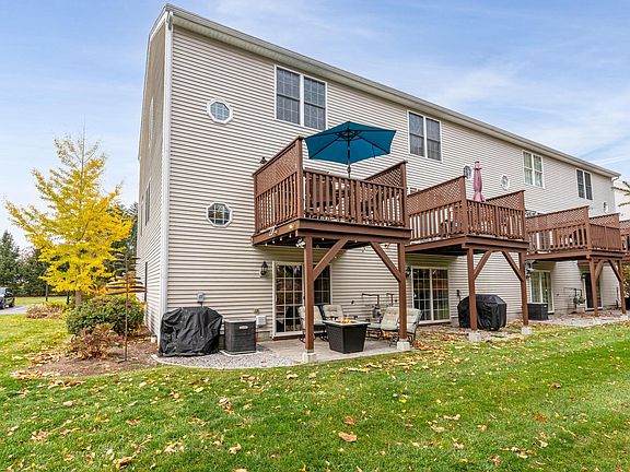 Welcome to The Village of Crosswinds — a pet-friendly, beautifully maintained community tucked away on a peaceful cul-de-sac in desirable Goffstown. Enjoy the perfect blend of comfort and convenience with easy access to local amenities including grocery stores, gyms, parks, the Goffstown Rail Trail, and the scenic Piscataquog River. This bright and spacious end-unit townhouse offers exceptional privacy and picturesque views of the expansive, tree-lined common yard — fully landscaped and maintained for you! Spend your leisure time relaxing on the patio or deck, or cozying up by the natural gas fireplace. Inside, the welcoming entryway features elegant tile flooring that continues through the ground level, while the main level boasts beautiful hardwood and tile floors. The updated kitchen is a standout with granite countertops, a stunning glass tile backsplash, and a combination of under-cabinet, recessed, and pendant lighting that enhances the open-concept layout filled with natural sunlight. With two pantries, generous closets on every level, and a large attic, storage will never be an issue. The primary suite features a vaulted ceiling and large walk-in closet, while the second bedroom also includes a walk-in closet. Enjoy low-maintenance living with natural gas forced hot air heating, central air conditioning, and public water and sewer. Additional highlights include a new water heater and a roof replaced just two years ago. Don’t miss your chance to make this home yours!