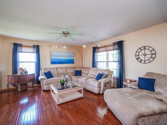 Meticulously cared for 5-bedroom, 2.5-bath home located on a cul-de-sac, backing up to a park and walking path. This stunning property boasts over 3,000 SF with numerous desirable features, including inviting front porch, first floor laundry, first-floor bedroom/office, two separate HVAC systems, hardwood floors, whole house generator, heated 3-car garage, basement with bath rough-in, new roof and newer appliances. The fenced-in yard includes a 16 x 24 composite deck, two sheds, a separate dog run, a fire pit, and a sprinkler system. The master bedroom features a large walk-in closet and a vanity area with a separate water closet. Bedrooms 3 and 4 share a Jack and Jill vanity area and a walk-in closet. With so much to show off, this is a must-see! Schedule your showing today!