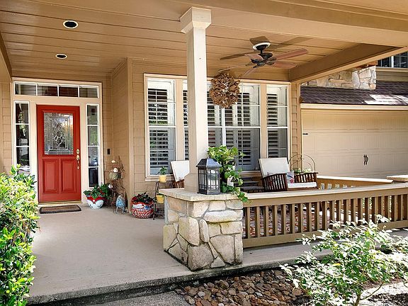 These original owners have shown so much TLC to this LifeForms home that backs to a lush greenbelt in Alden Bridge! Located on a cul-de-sac street, this home features a covered front porch, extensive hardwood and tile flooring, new carpet, recent neutral interior paint, soaring ceilings, plantation shutters, art niches, and abundant windows throughout. The open concept island kitchen with granite counters and under cabinet lighting overlooks the breakfast room and den with gas log fireplace; spacious study; both formals; all four bedrooms and game room up; the screened-in porch overlooks the large, fenced backyard with an outdoor TV, Sonos speaker system, heated pool and spa - and no rear neighbors!
