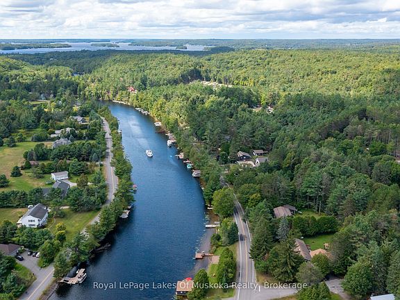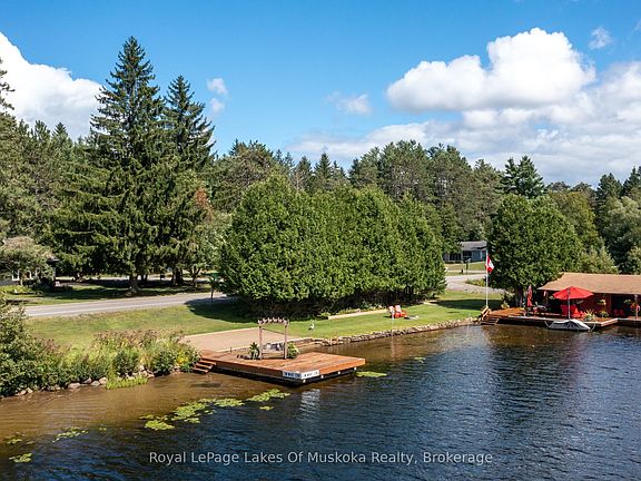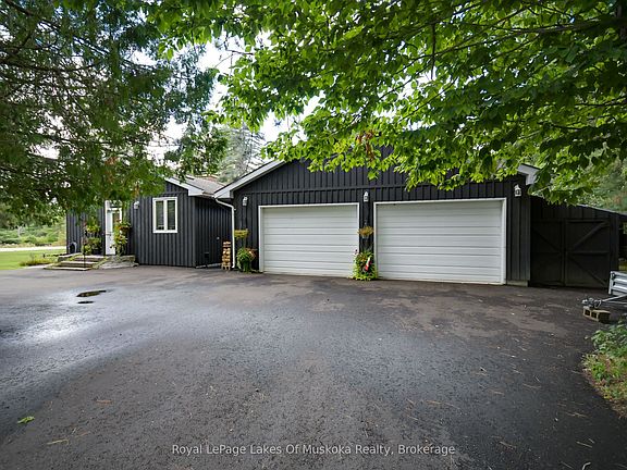 With 150 frontage accessing Lake Muskoka, a grandfathered boathouse, two docks, a fully renovated home and a guest bunkie you literally have everything that you could ever want in a Muskoka property! There is plenty of room for the whole family in a renovated home (1800 sq.ft.)+/- that boasts solid hardwood floors, large custom kitchen, granite counters with high-end appliances, PFA, CA, a stunning original stone wood burning fireplace and a recently renovated large primary suite with large custom walk-in closet, beautiful custom primary bath and walkout to the rear private hot tub retreat. The main 4 piece bath satisfies the needs of the second bedroom as well as any guests. The custom vaulted ceiling with six skylights provides natural light that adds an ambiance often enjoyed while overlooking the waters edge. Additionally the main floor offers an open, bright office. The lower level contains another bedroom, full bathroom, rec room with fireplace and a complete bar as well as an excellent storage room and full laundry room. The guest bunkie can host up to 6 people comfortably, has a 2-piece bath, propane fireplace and AC, so it is excellent for overflow guests year round. The grandfathered boathouse (2010) and two docks are positioned to offer full usage of your frontage that is level with its own beach giving ample room for enjoying every game the family wants to play. The detached oversized (900 sq.ft)+/- double garage has a 3rd garage door to the rear yard for ease of access. The property is fully landscaped and the circular driveway is newly paved. This is a location that is close to town yet just a quick ride to Lake Muskoka for all of the destination boating you could ask for.