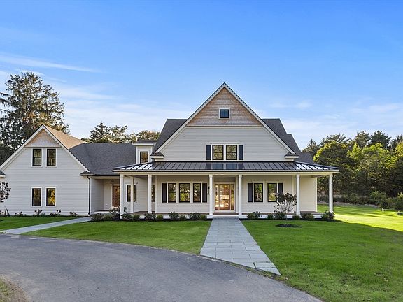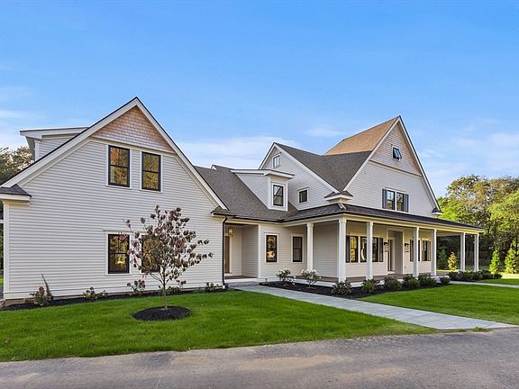 Newly built modern farmhouse offering 4,690 sq ft of thoughtfully designed living space on a quiet private lane near Wenham Center. This home blends timeless craftsmanship with modern comfort, featuring an open-concept layout, custom millwork, a gas fireplace, and oak flooring throughout the first and second floors. The kitchen includes custom cabinetry, quartz countertops, and an oversized island—ideal for both everyday living and entertaining. The primary suite offers a walk-in closet and a spa-like bath with a soaking tub, while additional bedrooms feature custom built-in closets. Other highlights include a 3-zone high-efficiency HVAC system, 400-amp service, an EV-ready garage, and propane heating. Mahogany porches, bluestone walkways, and a landscaped 18,000 sq ft lot complete this move-in-ready home, just minutes from Wenham Center, local cafés, the commuter rail, and Route 128.