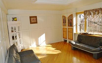 Lovely expanded bi-level; 2, 455 sq.ft. per tax records. 3BR septic. LR and EIK w/gleaming HW flrs, custom molding, woodwork, built-ins throughout;spacious FR w/coffered ceiling; Back deck overlooks level 0.77 acres with fenced backyard; updated vinyl siding and newer roof; new septic system in 2009; 2-car garage w/one side converted to living space, but garage door remains; can be switched back to use as garage. This generously-sized home features ample living space, large bedrooms, 3 full baths. Located on idyllic cul d'sac; convenient to schools, recreational facilities.