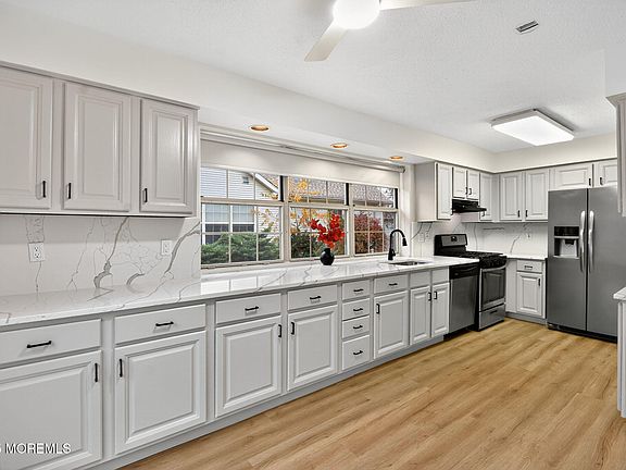 Welcome to a beautifully renovated Devon model ranch in desirable Winding Ways. This freshly painted 2-BDR, 2-BA home blends comfort w/thoughtful updates throughout-a true move-in-ready standout. Step into the expansive living room featuring vaulted ceiling & formal dining area. The spacious EIK offers ample cabinetry, brand-new Quartz counters/backsplash, & a new sliding door to outdoor patio. The primary suite includes a large WIC w/cedar attic storage & a fully renovated en-suite bath. Both bathrooms are completely upgraded w/new showers, tub, stylish floor/wall tile, & sleek modern vanities. Highlights include new LVP floors, new HWH, newer roof (2019), & a freshly painted 2 car garage w/epoxy floors. Enjoy easy living in one of the areas most desirable & affordable-55+gated community