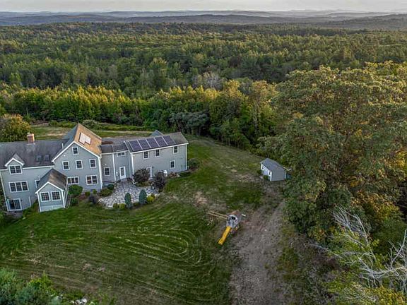 This very special property is a nature lover's paradise, and has great potential for horses or a gentleman's farm! Take in the incredible mountain views, open fields and miles of trails that begin on the property and continue onto abutting conservation land, yet this private oasis is less than 20 minutes from Nashua, Manchester and the airport, as well as great shopping and restaurants! The beautiful custom home was designed to take advantage of the views from every room, built with premium materials, there are 9' ceilings, a chef's kitchen featuring a gas cooktop, double wall ovens, center island with seating, built in hutch, desk and plenty countertop workspace. The Dining Room has a Rumford fireplace plumbed for gas and adjoins the Family Room with a wall of windows with transoms, to enjoy the mountain views, built-in cabinetry with TV and another fireplace, this one with a woodstove. On the 2nd floor, there are 4 generous bedrooms and a large Bonus Room. The Master Suite has windows on 3 sides, to take advantage of the views, 4 closets and a 4 piece Master Bath. The Bonus Room has a separate heating/cooling system, is plumbed for a future bath, and has a 2nd staircase to the garage (good potential for a future in-law or au pair). Outside, there's a mahogany front porch with swing (to enjoy the VIEW!) and, out back, a granite slab patio overlooking the play area. There's plenty of open lawn for a future pool and, another large field for outdoor events and activities.