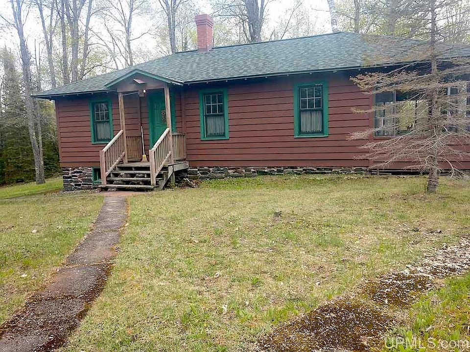 Hands up if you have been wanting a cute cottage on a beautiful lake! All season cottage perfect for boating, fishing, hiking, cross-country skiing, snowmobiling, all at your fingertips! Well cared for 2 bedroom/1bath cottage with 451' of Lake Michigamme frontage and a 2.6 acre lot! One of the largest inlet lakes in the Upper Peninsula of Michigan covering 4200 acres and depths of 70' with great Walley and Northern Pike fishing! Gated entrance into property! This Arts & Crafts cottage was the guest house to the mammoth Sam Cohodas Lodge next door, listed on the National Register of Historic Places. Deck overlooking Lake, three-season sun porch, spacious living room open to dining area. There's a little den area off kitchen before the 1st bedroom - use it in a way that suits your family! Cottage offers a partial basement - starts off with a convenient storage area before you venture down to the basement where the furnace and water heater are located. Detached oversized one car garage for even more storage! Stairway to the water and dock area. Nice sandy beach area along the property for you to escape to! Many recent updates and ready for you, your family and summer!