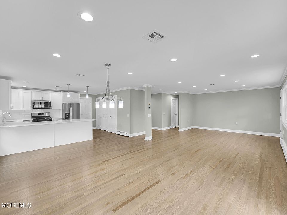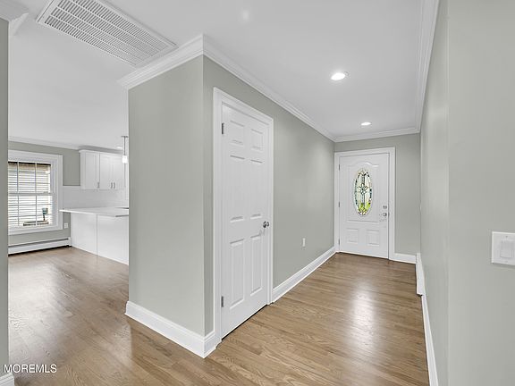 Step into this stunning top-to-bottom Bal Harbor renovation where no detail has been overlooked. This open-concept home boasts brand-new windows, ,roof & siding outside along with gleaming HW floors, & crown molding throughout. The bright and airy layout is enhanced by recessed lighting and modern design touches that make every room feel inviting. Open kitchen w/white shaker cabinets, quartz counters, SS appliances, plenty of space to entertain. Both bathrooms are luxuriously finished with ceramic tile, glass shower doors, and LED lighted mirrors for a spa-like experience. Additional features a 12x21ft 3-season room, 12x 30 concrete patio for outdoor entertaining, INTERIOR laundry room & plenty of storage. Located on a corner, oversized lot, quick closing available if needed.