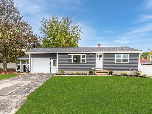 Welcome home to this newly renovated ranch style home in a neighborhood of just 5 homes in a quiet yet convenient location. Highlighted by modern brand new hardwood cabinets and quartz countertop, the large eat in kitchen includes recessed lighting and overhead fixture. Gorgeous vinyl plank floors accentuate the fresh neutral paint throughout which is accentuated by the natural light throughout the open concept main floor living. 2 bedrooms with plush carpet and overhead lighting and flush mount ceiling fans share the gorgeous main bathroom with tile surround, wainscoting and brand new fixtures. More? The lower level is finished with 2 additional rooms, 1 with it's own full bathroom and closet that can be used as a cozy primary bedroom suite the other designed to be a family room or theatre room. Also here is a dedicated laundry room and additional room for storage or a woodworking room. Many possibilities! Don't underestimate the value of the brand new roof, siding and windows and the newly added 5" of loam and hydroseeding done this fall. Lawn photo in listing is a facsimile. Updated Plumbing and Electrical with city permits. Showings by appointment begin Wednesday 11/12/25 at 5 pm.