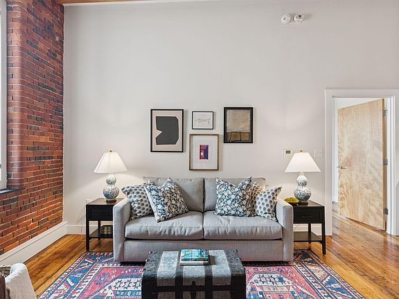This two bedroom, two bathroom condo features a sun filled den that leads to your private balcony. The condo exudes historic charm with its high ceilings, exposed brick and beams, antique maple hardwood floors, and over sized windows. Modern conveniences include an upgraded kitchen with stainless steel appliances, kitchen island and granite counter tops, heat pumps for efficient heating and cooling, and an in-unit washer/dryer hookup. The popular layout features a bedroom on each side of the living room, with a primary bedroom offering an en suite bathroom and a walk-in closet. The generous bedroom sizes easily accommodate king-sized beds and your personal touches. East-facing windows flood the brick-accented living room with morning light, creating a delightful, sunlit atmosphere. Imagine living vibrantly and connected in the heart of revitalized Biddeford, Maine. Enthusiasm is palpable for the chance to own a home within the Pepperell Mill community, where a dynamic blend of businesses, artists and residents co-exist harmoniously. Once an essential mill town powered by the Saco River, Biddeford has transformed into a creative hub, offering an ideal environment for individuals who want to be part of this exciting and growing tightly knit community. Situated on the scenic Saco River, this 17-acre property is conveniently located just a 20-minute drive from Portland, and a short distance to the Saco Transportation Center, which provides daily train service to Boston. Amenities include low HOA and utility fees (internet included!), parking space, solar energy, a dog park, dog wash, grilling areas, bike storage and EV charging. Enjoy the charm of small-town living paired with the vibrancy of a community brimming with talent. Biddeford is home to award-winning local businesses, restaurants, coffee shops, and bagel shops gaining recognition throughout the Northeast. Additional units are available to find your perfect place in this thriving community.