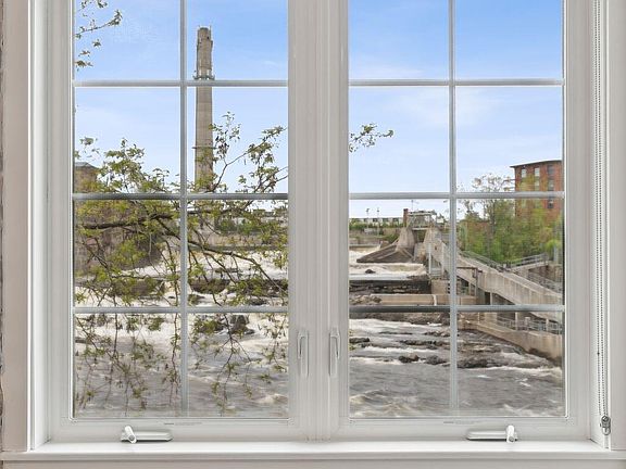 This oversized one bedroom condo, with a great layout and large windows has so much charm with exposed brick and stunning water views of the Saco River. Modern conveniences include an upgraded kitchen with stainless steel appliances, heat pumps for efficient heating and cooling, and an in-unit washer/dryer. The bedroom also has an A+ view of the falls and feels like you are in your own little corner of the world. The large windows flood the brick-accented living room with all day natural lighting along with allowing an uninterrupted view of the Saco falls, creating a delightful, sunlit atmosphere. This unit also comes with a large assigned storage unit!