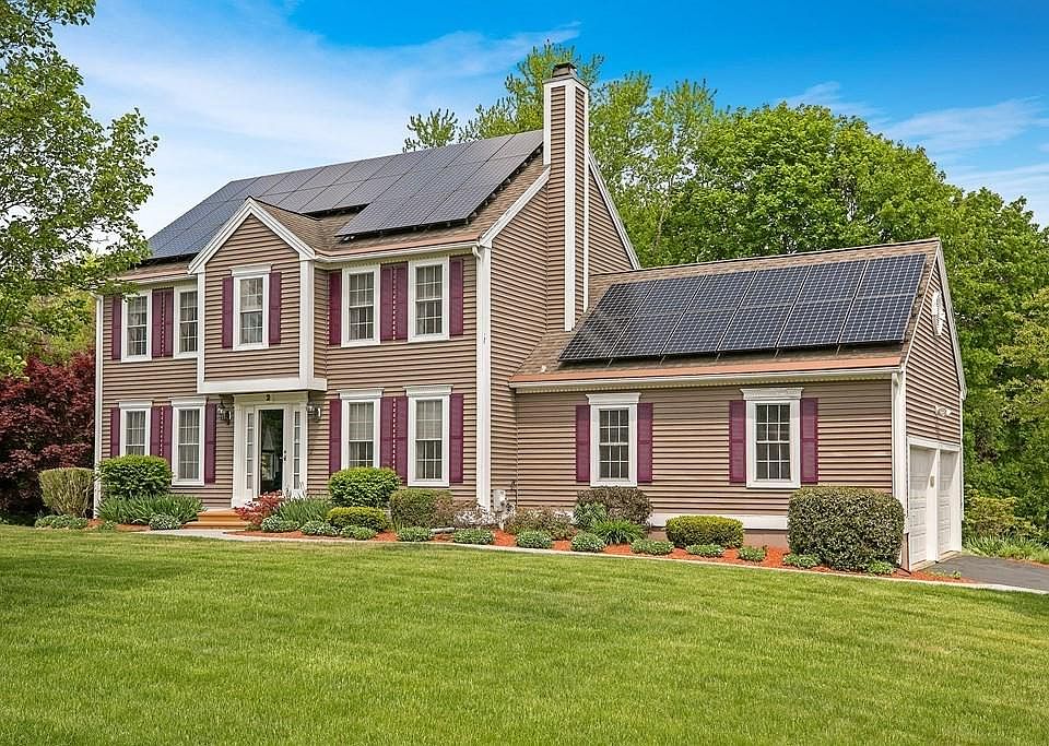 Welcome to 2 Manor Lane, a pristine, 4 bedroom, 2.5 bath Colonial located on a corner, 1/2 acre lot in Rocky Hill Manor! Enjoy CENTRAL AIR, income-producing SOLAR PANELS (owned - not leased!) a fabulous 4-season BRADY SUNROOM (perfect to enjoy your morning coffee or evening cocktails!), an above-ground, HEATED POOL, a TREX DECK, a lower level PATIO, a shed & a walk-out, finished lower level! Entertaining is a breeze in this well-maintained home! The Stamped Concrete Walkway provides access to the professionally landscaped yard that is serviced by an 8-zone irrigation system. GUTTER HELMETS eliminate the need to clean your gutters! The attic space above the 2-car garage offers plenty of additional storage. Title V passed. The seller has recently relocated - a quick closing is no problem! Commuting is a dream - located just minutes to Routes 395, 12, 20, 56 & the Mass Pike!