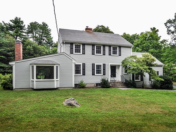 Walk to town and miles of trails from this sun filled 8 room, 4 bed, 2.5 bath gracious Colonial sited on a raised level lot on quiet cul-de-sac in sought after location. Meticulously maintained and update by original owners. Tons of light from skylights and walls of glass fills the country kitchen. Bead board cabinets with granite counters. The formal dining room with walk-in bay and fireplaced living room each step down into a spacious family room with large blue stone surround wood burning fireplace, built-in book cases, oversized plant window and slider wall to deck shared with kitchen. A spacious master bedroom with bath and three additional bedrooms and guest bath occupy the 2nd floor. The floored attic is accessed by a pull-down staircase. Easy access to 2 car garage and shed. Hardwood/tile floors. Newer Hardi plank siding and Azek. Great commuter location to Wellesley, Needham, Natick and more.