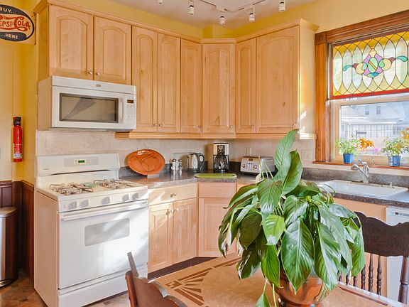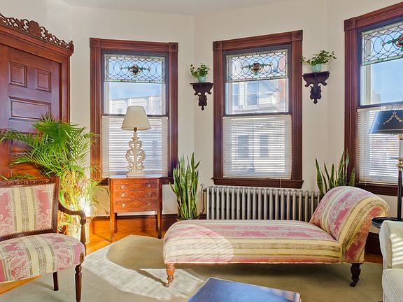 Huge sun filled 2nd floor unit with high ceilings, gorgeous hardwood floors offering beautiful old world charm fill with stain glass.Unit offers big Eat in kitchen,Large pantry off kitchen,dining room, living room, beautiful bath.