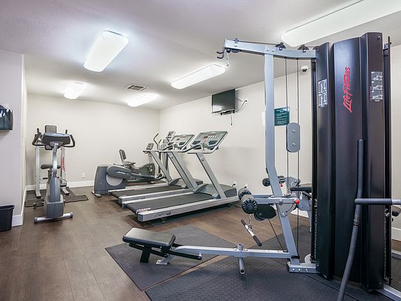 Basketball and tennis courtsShimmering swimming poolSpacious walk-in closetsVertical blindsCentral air and heatingPicnic area with barbecueCeiling fans