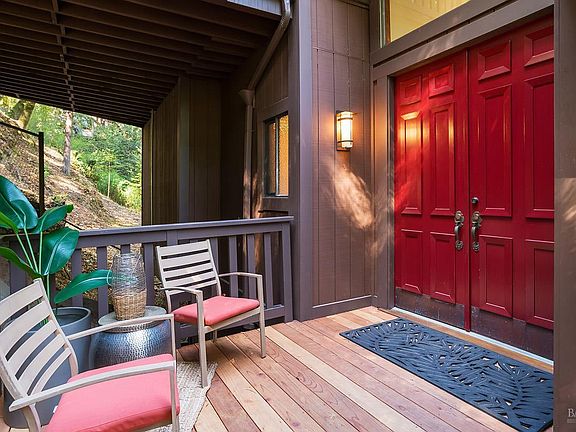 A sight to behold, this vintage 1974 jewel box greets you as you come up the road. Enter its double doors into the foyer and you'll immediately take in your own private redwood grove. Views are all around you, with the home's windows and high ceilings. Four bedrooms are on the entry level, including a large primary suite with remodeled bath. A breezy, loft-like hallway overlooks the home's expansive living level, the hallmark of which is the living room with its double-height ceilings, wall of windows and majestic fireplace. A spacious family room sits at the other end, allowing for separation yet easy flow. The dining area leads out to a newly refurbished deck and flagstone walkway, surrounded by lush landscaping. Situated on a one-third-acre lot, at the foot of stunning, natural trails, yet just minutes from downtown Mill Valley, Two Marsh Drive is your own private paradise!