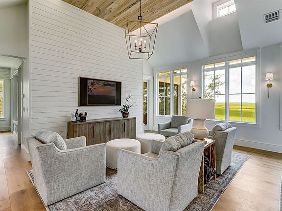 With 355 ft. of marsh front, this newly constructed William Rushing built home is 1 of only 12 homesites on Marsh Point Drive. Western views, stunning sunsets, and overlooking Long Point links, this home is like no other. Natural light floods the numerous cased windows accenting the neutral palate of the wide plank French oak wood floors, the rubble Texas stonework on the fireplace, the shiplap walls, and the Pecky cypress ceiling details. The gourmet kitchen is appointed with quartz countertops, stainless steel Thermador appliances, elegant contemporary lighting, and tile work unique only to this home. The main floor owner’s suite includes a spacious bedroom and ensuite bath including soaking tub, separate shower, vanity, and in-closet washer and dryer. The second floor offers a large bonus room and two spacious bedroom suites connected by a balcony overlooking the marsh. Watch the birds from the screened lanai with built in grill or roast marshmallows by the outdoor fire pit.