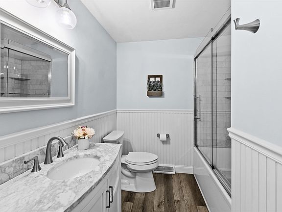 - Features: Bathroom - Full, Bathroom - Tiled With Tub & Shower, Flooring - Vinyl, Remodeled, Wainscoting, Lighting - Sconce, Lighting - Overhead