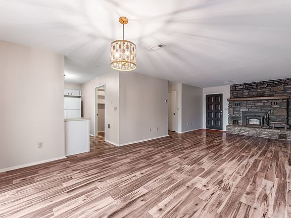 Next to golf courseStone wood burning fireplaceBeautiful back porchLots of counter spaceWhite cabinetryHard surface flooring