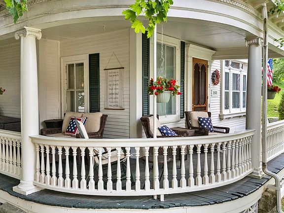 Set on a .24 acre lot, just a short stroll to the vibrant center of Adams, with its restaurants, shops, and small town charm, this 9 room, 4 bedroom, 2.5 bath home is rich with original detail and character. From the moment you step onto the welcoming front porch, ideal for lazy summer days, you'll appreciate the timeless appeal of this property. Inside, natural woodwork and ornate moldings showcase the craftsmanship of another era. The grand foyer features a fireplace and built-in window seat, and leads gracefully into both the living room and formal dining room, each showcasing original ceiling details, highlighted by original Lincrusta wallpaper, that reflect the home's historic elegance. The paneled den/office (also accessed from the foyer), enclosed rear porch, and wainscoted powder room add to the charm and flexibility of the layout.