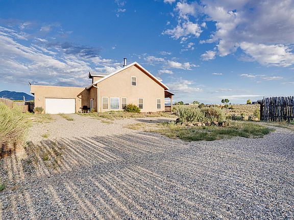 Terrific territorial on Hondo Mesa 1 acre ridge top lot with spectacular 360 degree views. 1998 sq ft with 2 bedrooms and 2 baths PLUS a large open second floor loft area. Cozy living room with wood stove insert that keeps you warm in the winter. Radiant floor heat. Open kitchen/dining area. Vaulted ceilings. Spacious open master bedroom with office nook. Attached garage. Huge upstairs storage room with plumbing for future conversion to another ensuite bedroom. Fully fenced back yard. This can be your home sweet home! Seller is a licensed New Mexico Real Estate Broker.